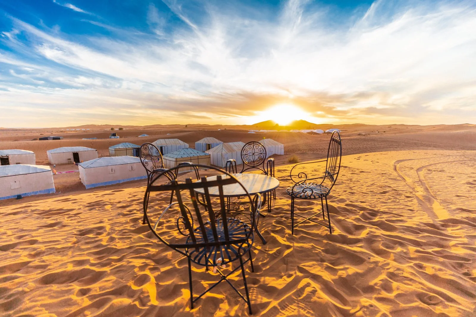 Sunset camel ride, overnight camping under the stars, sunrise camel ride, sandboarding, and traditional Berber entertainment with drumming.