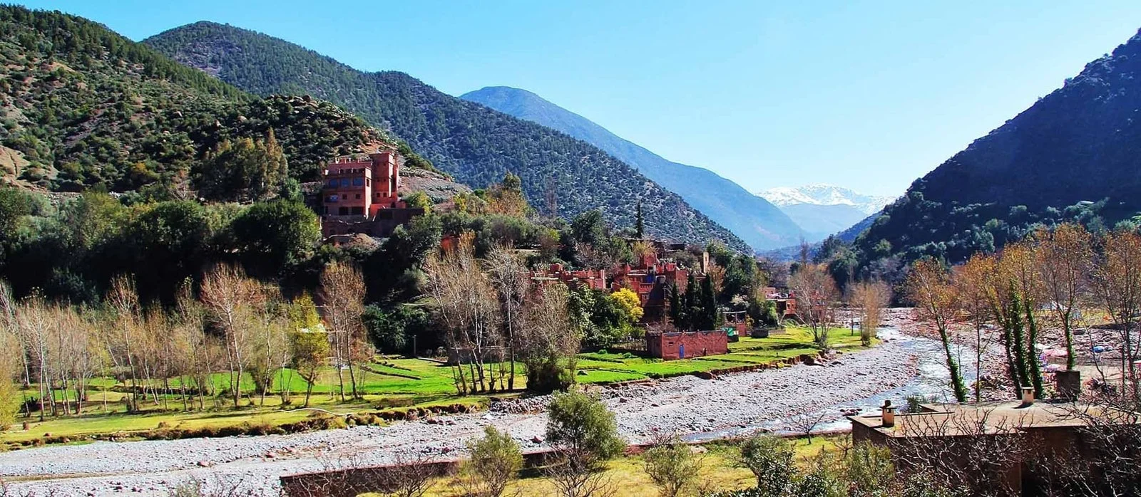 Shared Day Trip To Ourika Valley – 1 Day – Ourika Valley is situated at the base of the High Atlas Mountains, just 45 minutes southeast of Marrakech. This valley provides a tranquil haven for locals looking to escape the summertime heat in Marrakech.